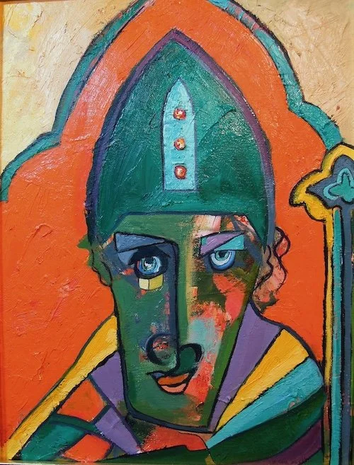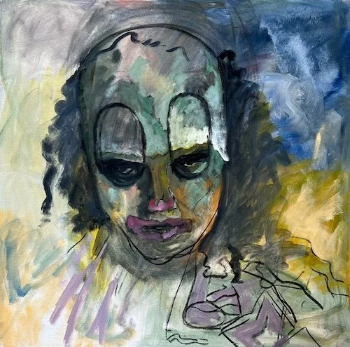 I find portraits much easier to paint than abstract concepts. The viewer is familiar with the human form and so any simple suggestion of a nose, an ear or a mouth is instantly recognisable even if the artist plays around with form and colour.